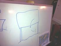 The land should not be too far away, so that in case of emergency there will be some place to go. The colony would live off farming, producing plankton, seaweed, algae, and fish (Caoilin was against the last item for humanistic reasons). Emma also suggested that we conserve energy and use submersibles (little submarines) for transportation and research. Her flag looks like it happened to be in a battle -- with bullet wholes and everything (she claimed that the four holes represented her sister at age four).