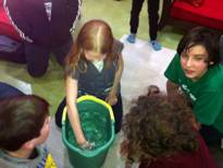 (With the help of volunteers, I presented further illustration of the power of water pressure using some home-made equipment such as a Happy Chanukah balloon, latex tubing, and a broken plastic wineglass for a funnel).