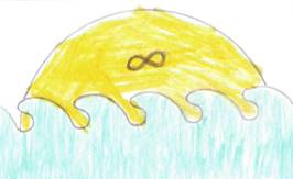 She explained that the yellow is the sun and the teal is the water, and there are stylized waves. The infinity sign symbolizes that our ways and means have no limit.