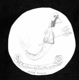 Adina did not specify an exact place for the colony. She suggested that for security purposes and “to make things easier,” we need to acquire a piece of land in a tropical area. If something goes wrong, we will have a place to go. She suggested using thermal gradients to produce electricity. The food would come from harvesting plankton, algae and seaweeds as well as fishing (Caoilin was against fishing for humanistic reasons). Adina told a story she had learned from Eugene of a man who lived for twelve days under water and used algae to regenerate air so that he could breathe. Adina suggested naming the colony Atlantis 2.0. For the anthem she used… Well, if you click here, you can listen to it; just imagine everybody standing with their right hand over their hearts (credits to Eugene who came up with the idea). Adina’s flag from far away would remind you of the Stars and Stripes, but the stripes are wavy, and there is a trident instead of the stars, its three prongs representing peace, progress, and prosperity. Looking closely, one can see a little yellow periscope that goes with the anthem. The Great Seal has an image of turkey-mermaid (turmaid?) with a trident. The motto on the banner reads: AD FUNDUM, AD FONTES, AD NAUSEUM, ECCE HOMO,” which means “To the bottom (of the ocean), to the sources (of knowledge), to the point of making one sick (nothing can stop us!), behold the man!”